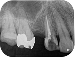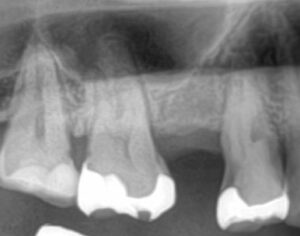 上顎小臼歯の根管感染に対して、マイクロスコープを用いた精密根管治療・MTA根充を行うことで、痛みは改善し、再発リスクも低減する結果となりました。